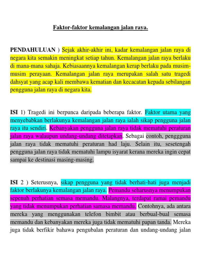 Cikgu Sabar Mohd Karangan Tingkatan 3 Faktor Faktor Berlakunya Kemalangan Di Jalan Raya